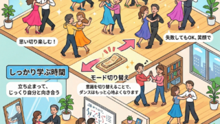 上達のコツと魅力 楽しく踊る時間と、しっかり学ぶ時間。社交ダンスをより豊かにする2つの「モード」 社交ダンスの上達と楽しさを両立させるコツをご紹介します。「楽しく踊る時間」と「しっかり学ぶ時間」のメリハリをつけ、お相手と目的を共有することで、心も体も心地よく動くようになります。 2026.03.15 上達のコツと魅力社交ダンスの楽しみ方